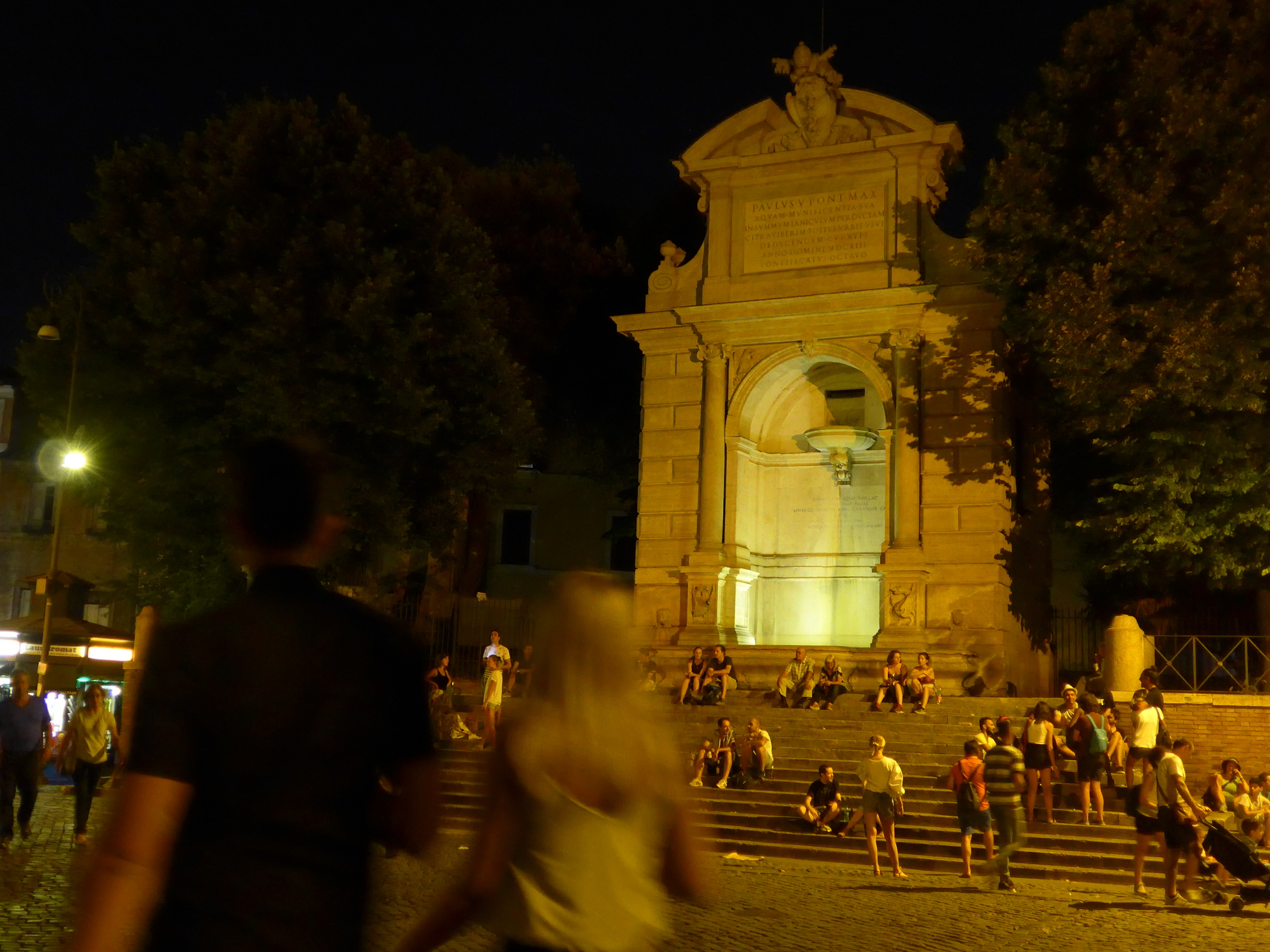 Wir verliessen den heiligen Ort und suchten erst ein Sandwich und dann die Piazza Navona um die Brunnen dort zu besichtigen und wanderten von dort zurück zum Hotel, um uns auf die Tour über den Hügel nach Trastevere vorzubereiten, wo die nächstgelegenen Restaurants lagen. Abends waren wir dann etwas überrascht von den Massen, die ebenfalls durch die Gassen liefen, um etwas zu essen und zu trinken.
