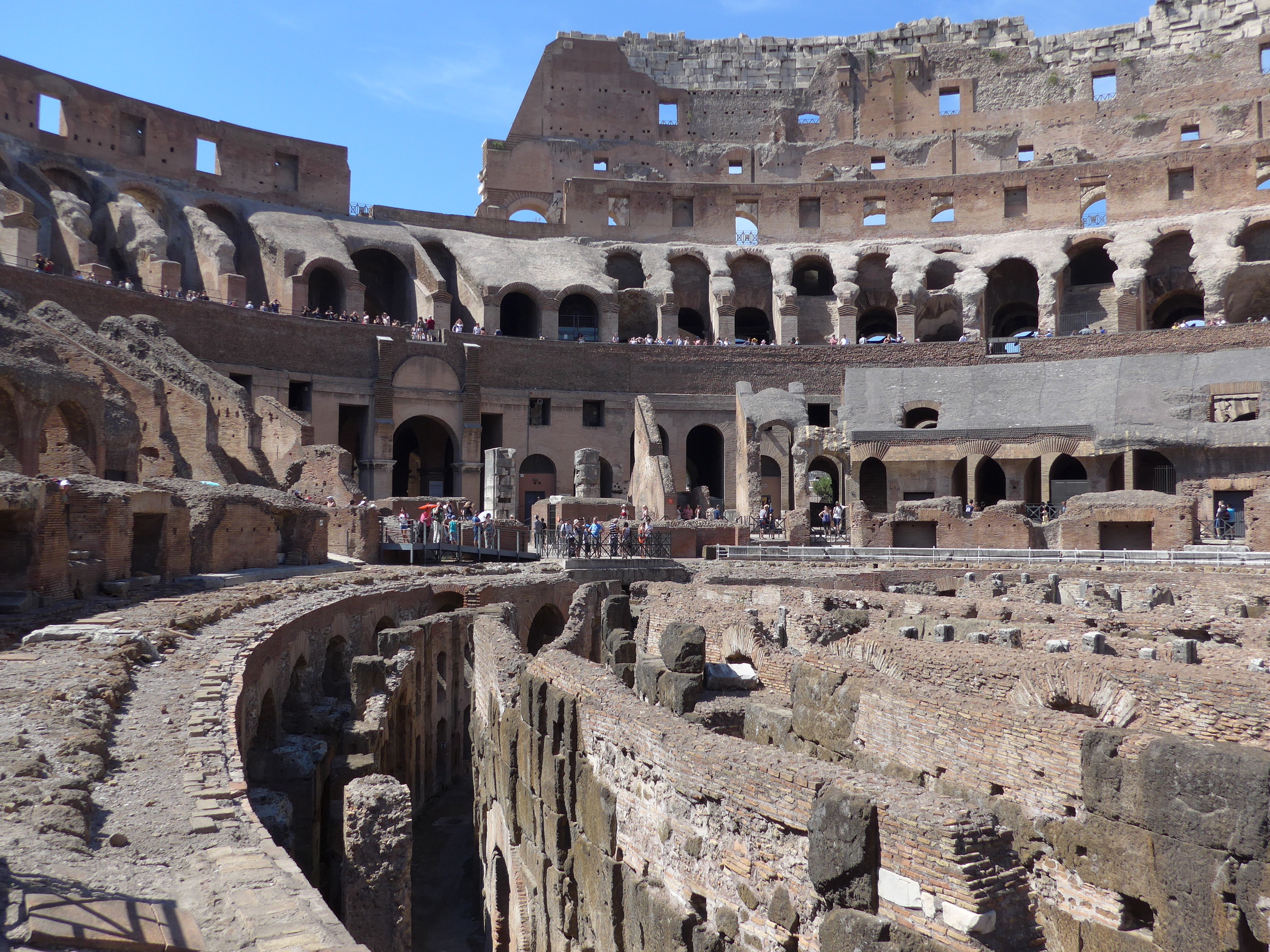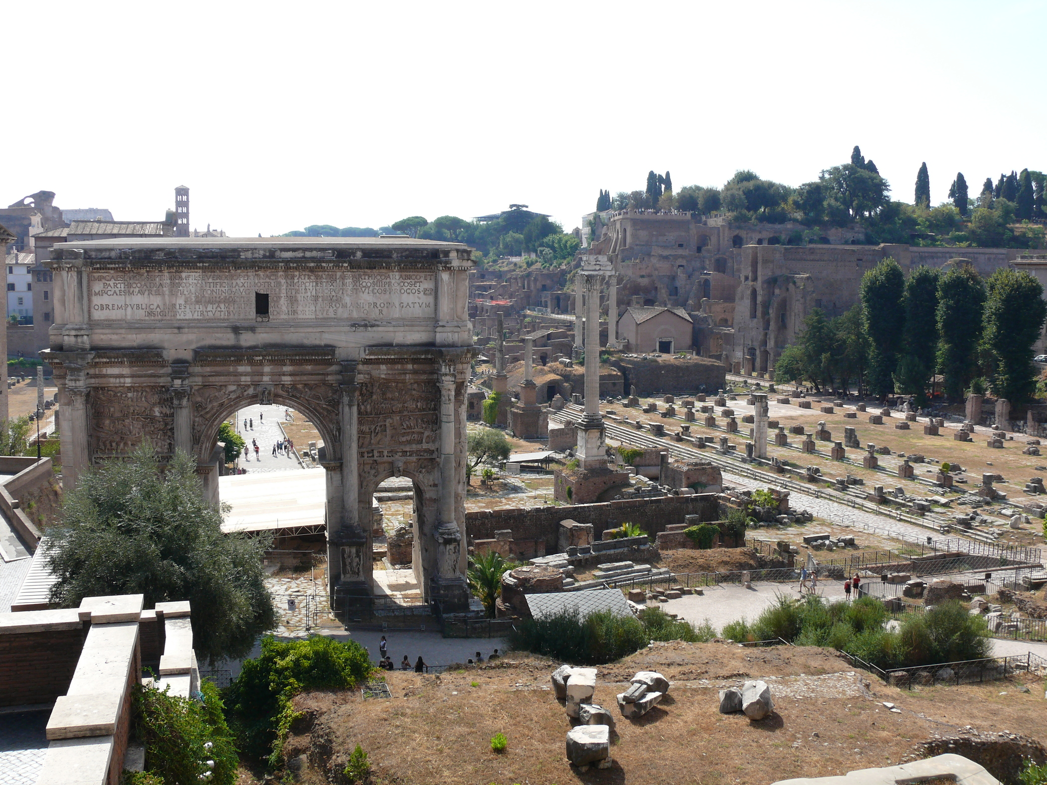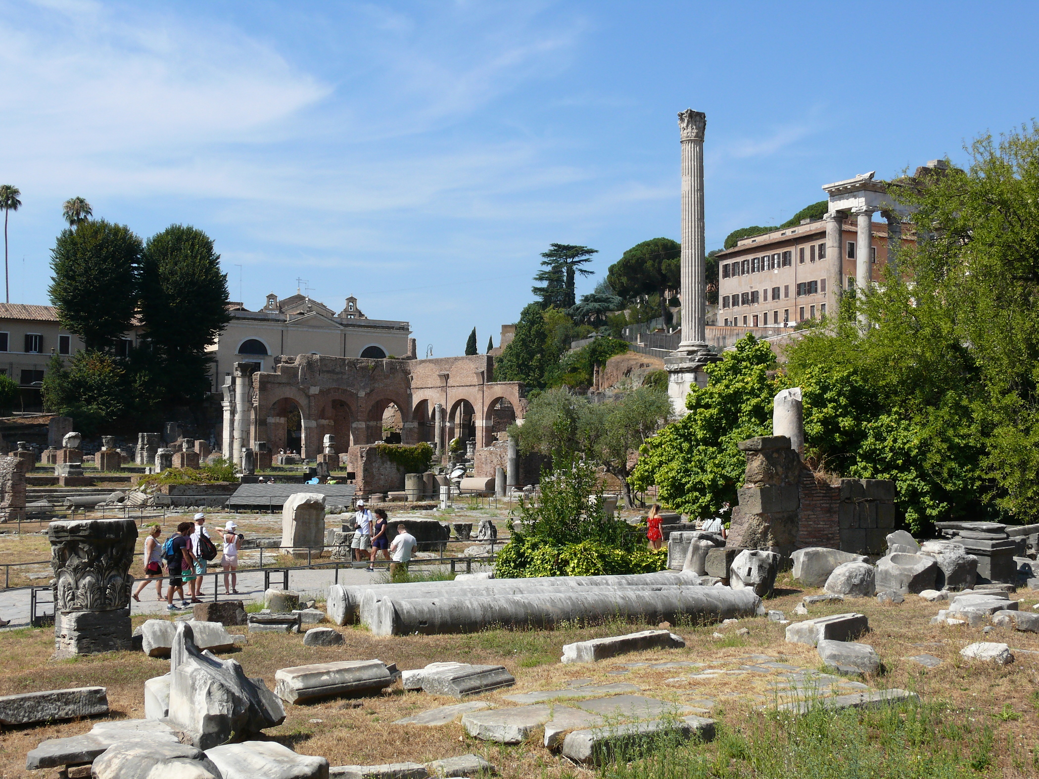 Nach dem christlichen stand das altrömische Rom auf dem Programm. Mit dem Bus gings zum Kapitol und einmal um das halbe Forum rum zum Eingang. Nach der Erfahrung vor dem Vatikan schien die 30m-Schlange harmlos, zog sich aber trotzdem eine Weile, weil die Ticketverkäufer auch die Bedienung und Rückgabe der verliehenen Audioguides erklären mussten, was oft mühsam schien. Danach wanderten wir ziellos durchs Forum und den Palatin-Hügel und lasen gelegentlich die halbwegs ausführlichen Schilder vor den Ruinen. Danach umrundeten wir je einmal aussen, innen und oben das Kolosseum, bevor wir mit der U-Bahn zur spanischen Treppe fuhren und einen kleinen Spaziergang zur Villa Borghese machten. Mit U-Bahn und Bus gings zurück, wobei Roberts Stehplatznachbar das Kunststück fertig brachte, alle Scheine aus dem Geldbeutel in Roberts Hosentasche zu klauen, den Rest und den Geldbeutel aber in der Tasche zu lassen.