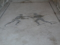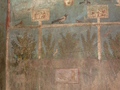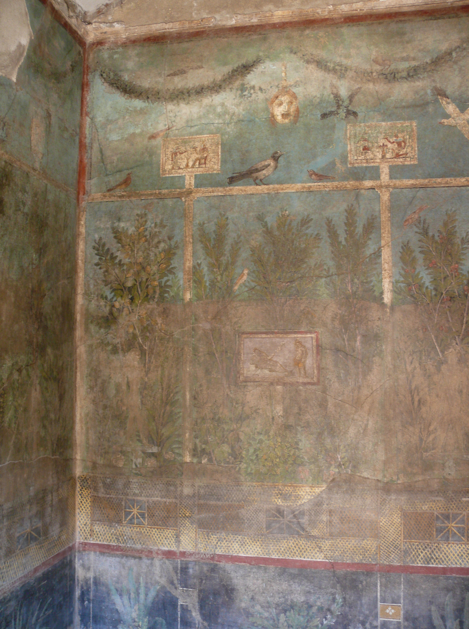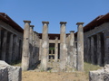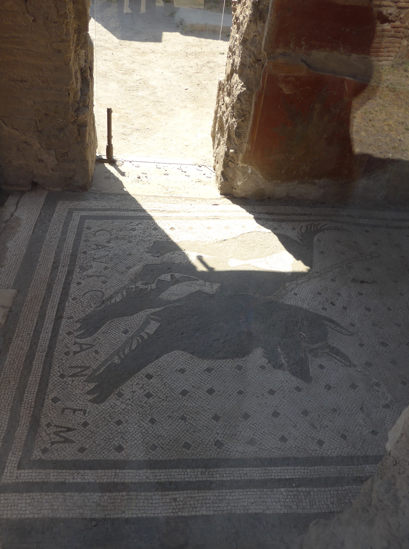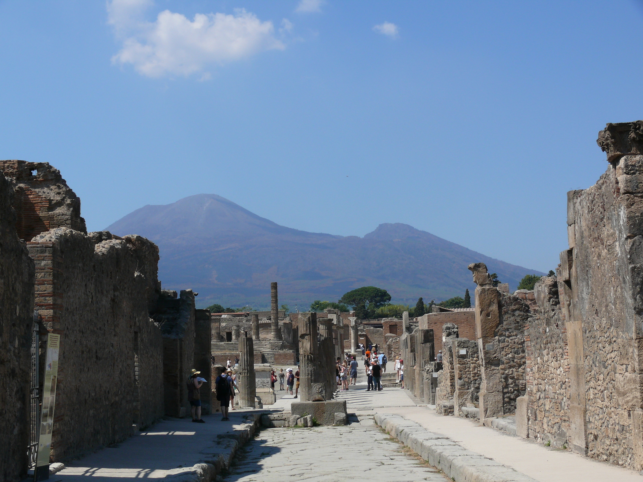 Einen Tag nahmen wir noch frei vom Baden und fuhren nach Pompeji. Dort kann man in ein paar Stunden durch eine halbwegs gut erhaltene antike Stadt laufen, lediglich die Decken der Gebäude fehlen. Im Gegensatz zu den bisherigen Sehenswürdigkeiten, etwa dem Forum, stehen dort auch nicht nur Tempel und Paläste, sondern man kann auch die Bäckereien, eine Wäscherei und Schnellrestaurants der damaligen Zeit besichtigen. Natürlich auch die Wohnhäuser, die überraschend bunt waren. Jeder, der es sich leisten konnte, hat anscheinend seine Wände farbig bemalen lassen, teils mit Ornamenten, teils mit Wandgemälden. An manchen Stellen am Ortsrand sieht man auch noch das originale Bodenniveau vor der Ausgrabung und kann sich vorstellen, dass eine meterdicke Schicht die Mauern und deren Farben gut konserviert hat.