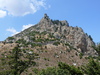 Wir hatten schon bei der Fahrt vom Flughafen nach Girne die Abzweigung nach Buffavento gesehen und fanden deshalb leicht die Zufahrt zum Parkplatz wo die Treppe zum etwa halbstündigen Aufstieg zur Burg Buffavento losgeht. Der Gebirgszug des Beşparmak (oder Fünffingergebirge, Pentadaktylos) begleitet die Nordküste fast über ihre gesamte Länge und an den wichtigeren Pässen wurden Höhenburgen errichtet, vermutlich weniger um die Pässe zu schützen (dafür stehen sie zu weit abseits der Strassen auf den benachbarten Gipfeln), sondern mehr um anschliessend den Nachschub zu behindern. Buffavento ist eine dieser Burgen, die zwar ziemlich kaputt sind, aber immer noch sehr malerische Ruinen mit tollem Ausblick abgeben. Dank des mühsamen Aufstiegs ist diese Burg auch recht einsam, zumal um die Mittagszeit.