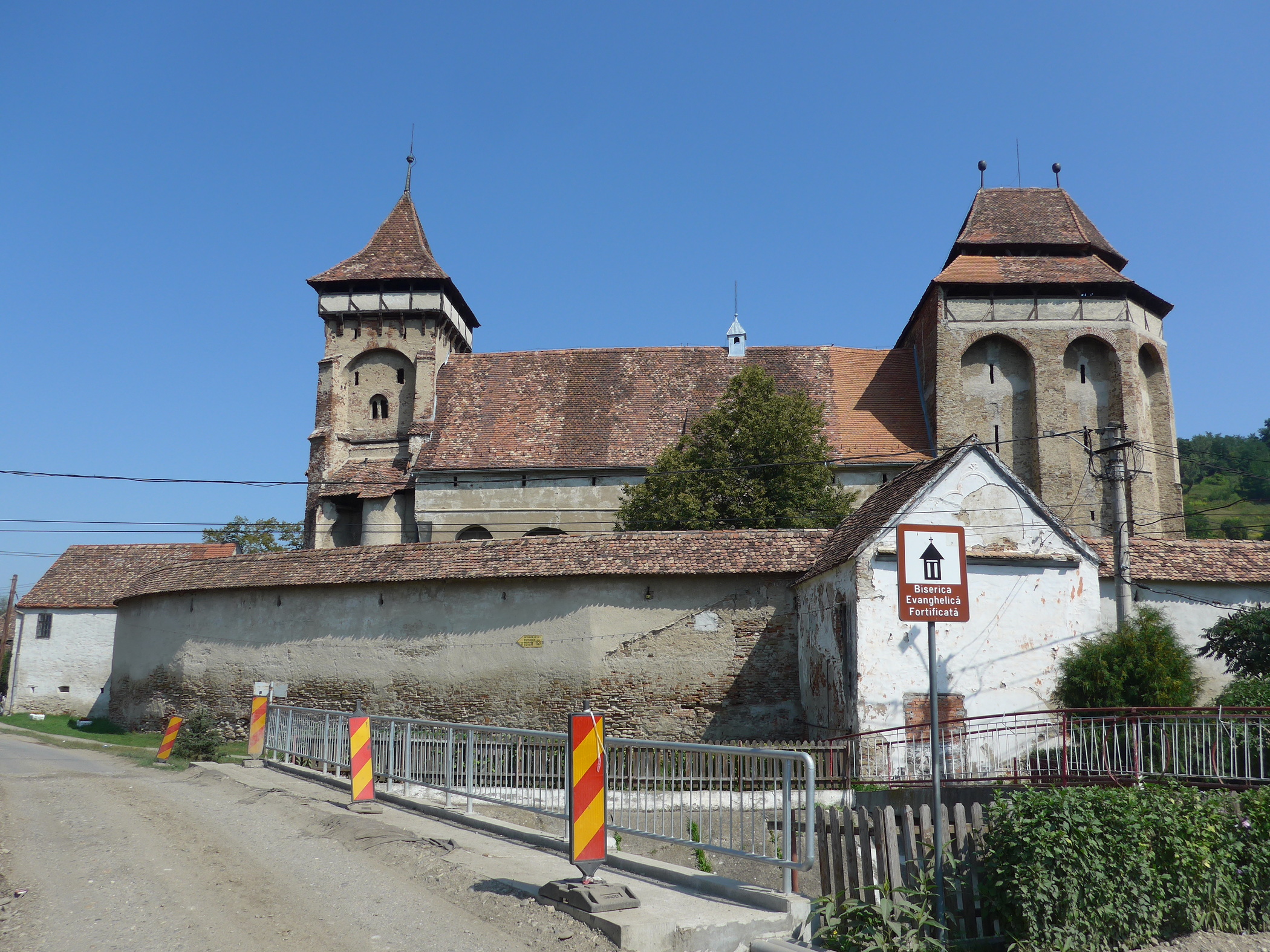 Der weitere Weg führte nach Valea Viilor / Wurmloch, ein kleiner Abstecher von der Hauptstraße zu einer weiteren Kirchenburg aus dem 14. Jahrhundert. Diese hier war kleiner als die in Cristian, weil sie weniger Platz zwischen Kirche und Mauerring hatte, dafür war die Kirche selbst wehrhafter. Mit einem Fallgitter vor der Kirchentüre, einem eigenen Brunnen im Chor und das, was man von Innen als Decke sah, war nur 2/3 des Gebäudes. Oben hatten die Erbauer noch ein Stockwerk mit Wehrgang draufgesetzt, das man vom Glockenturm aus erreichen konnte. Heute kommt man nicht mehr in den Wehrgang, den Turm kann man aber noch besteigen und runterschauen.