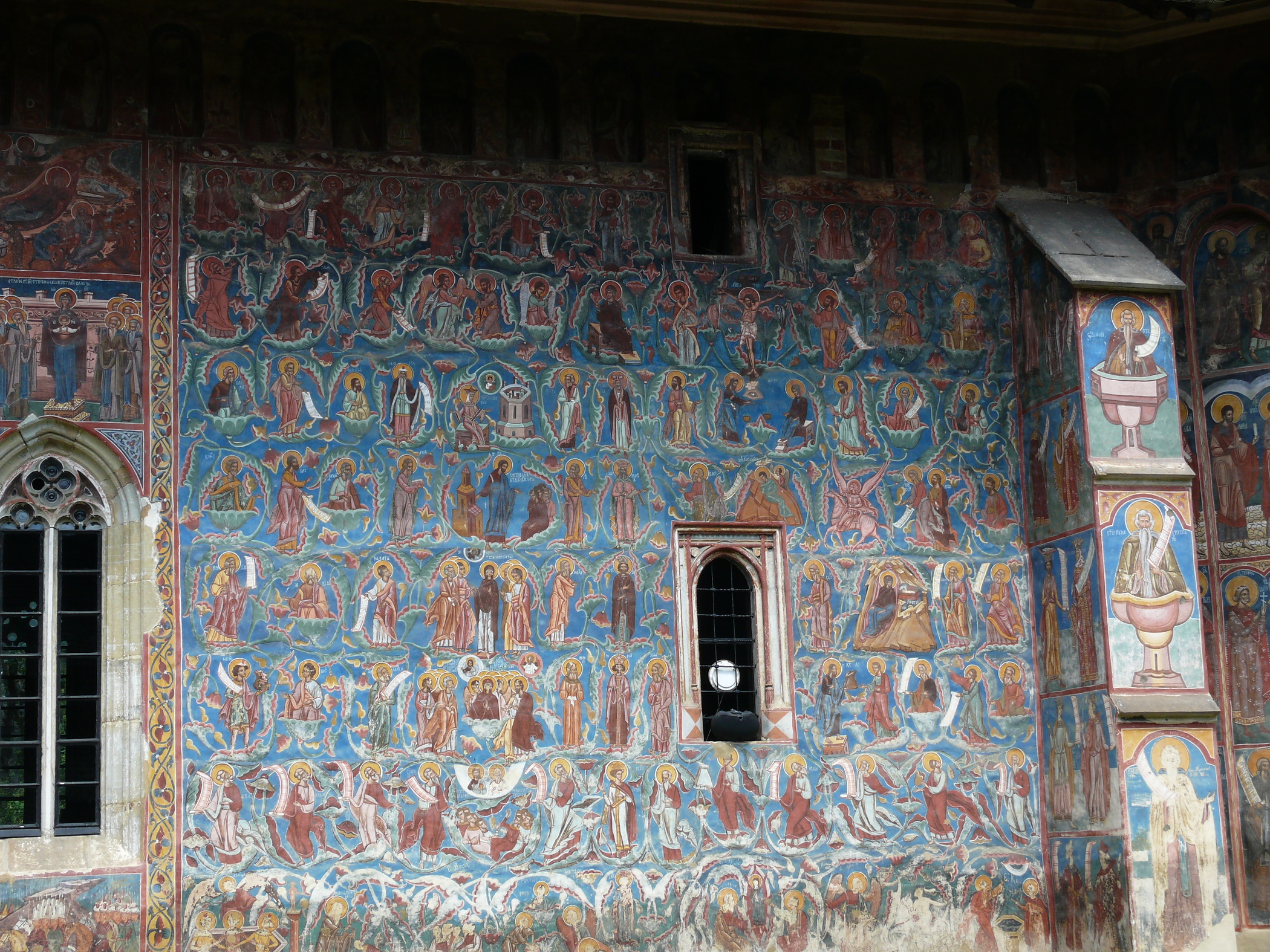 So standen wir in der Früh in Vatra Dornei auf dem riesigen Hof einer Werkstatt, die alles für den Wechsel der Bremsbeläge vorrätig hatte. Wir hätten nach einer halben Stunde fahren können, aber wir liessen noch die Klimaanlage auffüllen, die drei Tage zuvor den Dienst eingestellt hatte. So kamen wir etwas verspätet los und besichtigten nur zwei „Moldauklöster“ in Moldovița und Sucevița. Diese Klöster orthodoxer Nonnen in der Provinz Moldau zeichnen sich durch starke Befestigung und einer Kirche in der Mitte aus, die besonders intensiv bemalt wurde. Aussen biblische Szenen als mittelalterliches Bilderbuch für die Gläubigen, innen Kirchenschiffe voller kleinerer Gemälde. Ein bisschen gruselig kam uns in Sucevița der erste Raum der dreiteiligen Kirche vor. Sämtliche Tode aller Märtyrer sind ein bisschen zu viel…
