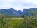 Am nächsten Tag fuhren wir durch das Apuseni-Gebirge, durchquerten also den Wald, von dem der Name Transsylvanien abstammt. Die Route führt erst nach Süden und zweigt dann nach Osten in die Berge ab. Man fährt durch Dörfer, die alle irgendwie gleich aufgebaut sind: 2 Kilometer lang und 50 Meter breit, weil jedes Haus an der Strasse steht. Die Häuser sind klein und mit einem Mäuerchen mit dem Nachbarhaus verbunden. So entsteht der Eindruck, man führe durch zwei geschlossene Häuserzeilen. Später gings dann in Serpentinen durch dichten Laub-, weiter oben durch Nadelwald, der von einzelnen Grasflächen mit Kühen drauf durchsetzt war. In der Mitte des Gebirges gabs auch einen Ort, wo ein paar Hotels und Restaurants zusammenstanden, auf der Ostseite ein paar Dörfer mit Pensionen für Schülergruppen, Wanderer und die Besucher der vielen Höhlen dieser Gegend.