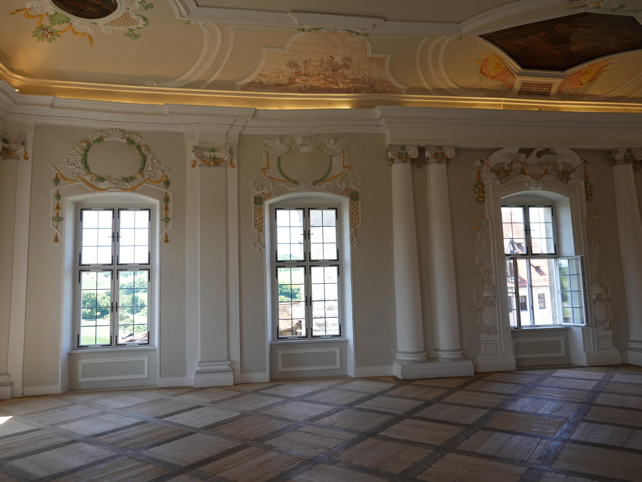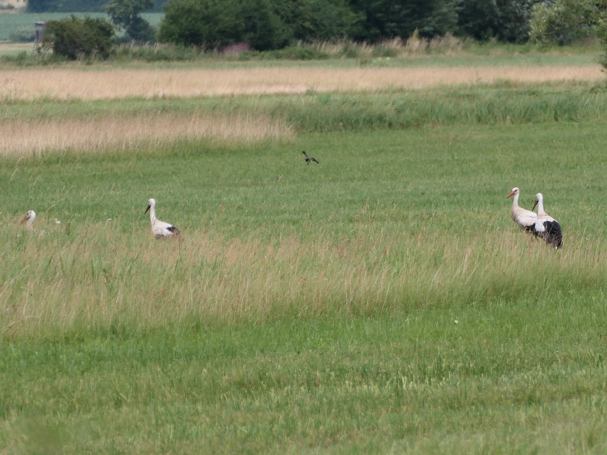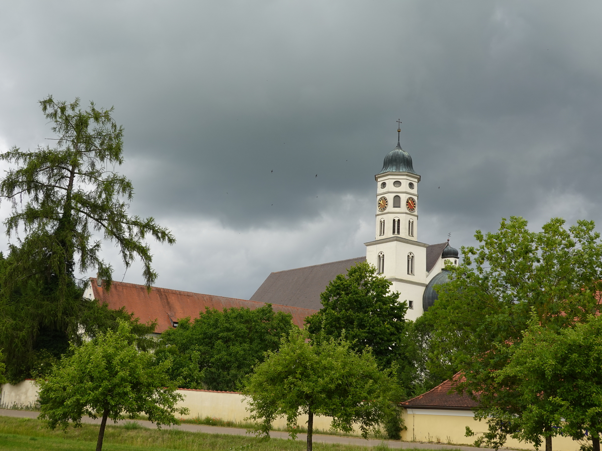Unseren letzten Tag haben wir dann eine kleine Wanderung im Geotop Maihingen gemacht und die Klosterkirche dort angesehen. Dann gab es einen Abstecher nach Wallerstein auf das alte Schloss Wallerstein, das jetzt die Brauerei beherbergt und zum neuen Schloss, das man nicht besichtigen kann, weil die fürstliche Familie da noch selber drin wohnt. Nachmittags waren wir noch in Wemding und in der Wallfahrtskirche Maria Brünnlein. Und weil Robert noch ein paar Vögel sehen wollte, sind wir noch durch hohes regennasses Gras im Vogelschutzgebiet Wemding gestapft. Hier gab es dann mal Störche und auch Kiebitze in der Wiese oder im Flug zu sehen.
