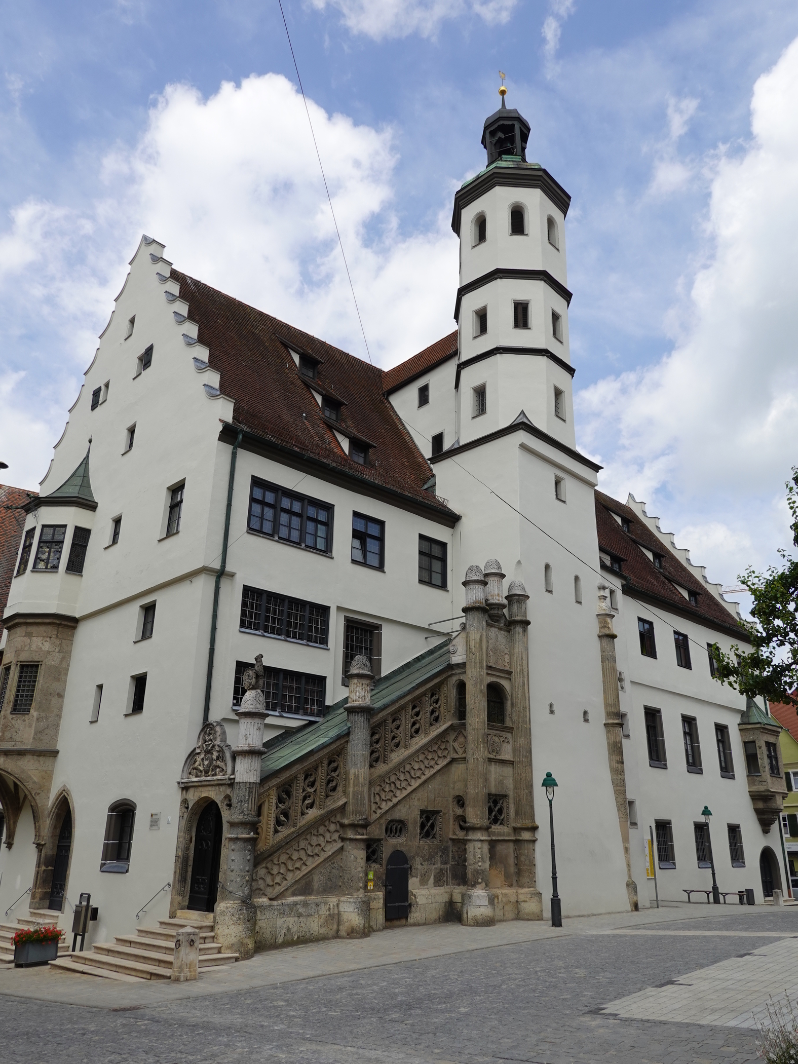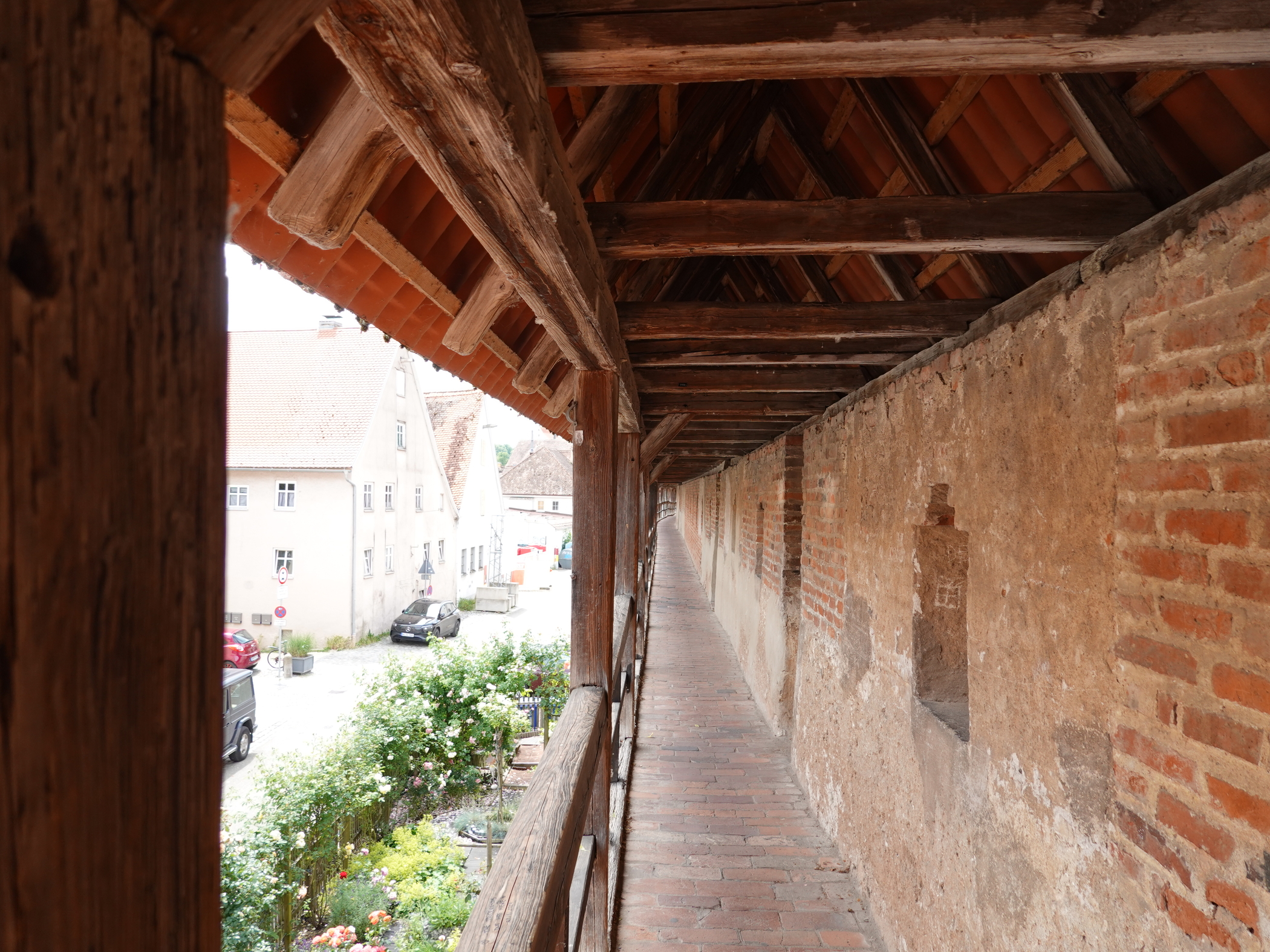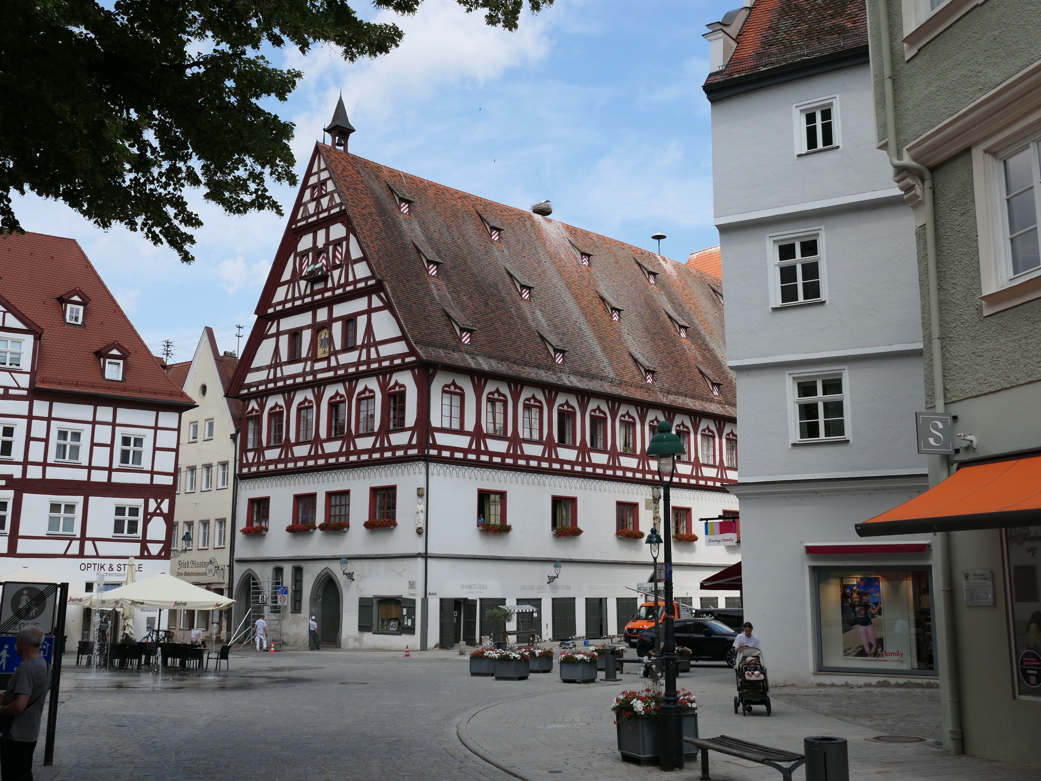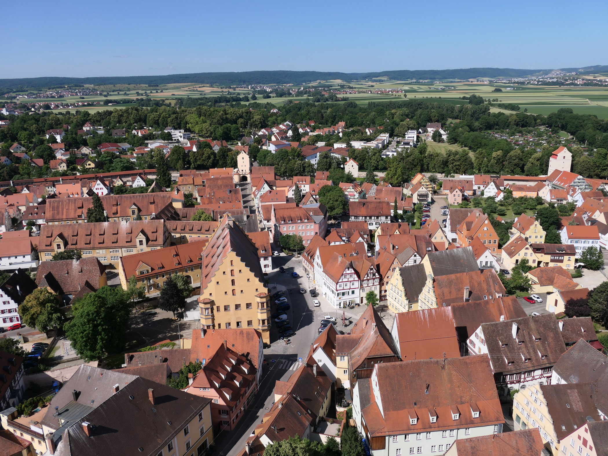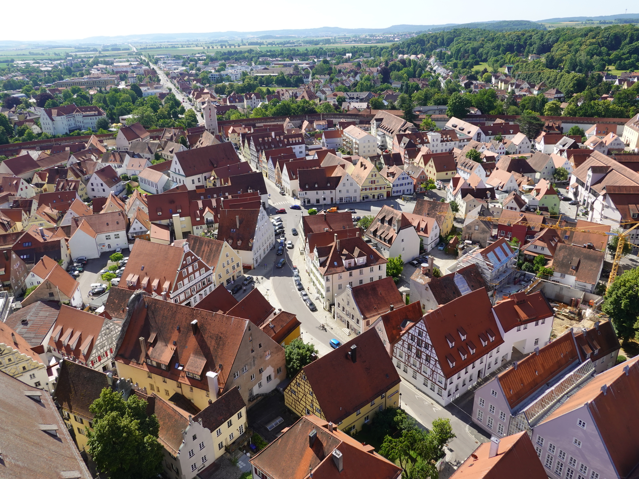 Am nächsten Tag sind wir durch die Stadt Nördlingen gelaufen. Die Stadt liegt mitten im Krater des Ries-Meteoriten und ist umgeben von der einzigen komplett begehbaren Stadtmauer in Deutschland. Auf einigen Häuserdächern gibt es Storchennester. Die Besteigung des Kirchturms Daniel haben wir uns für einen anderen Tag aufgehoben.