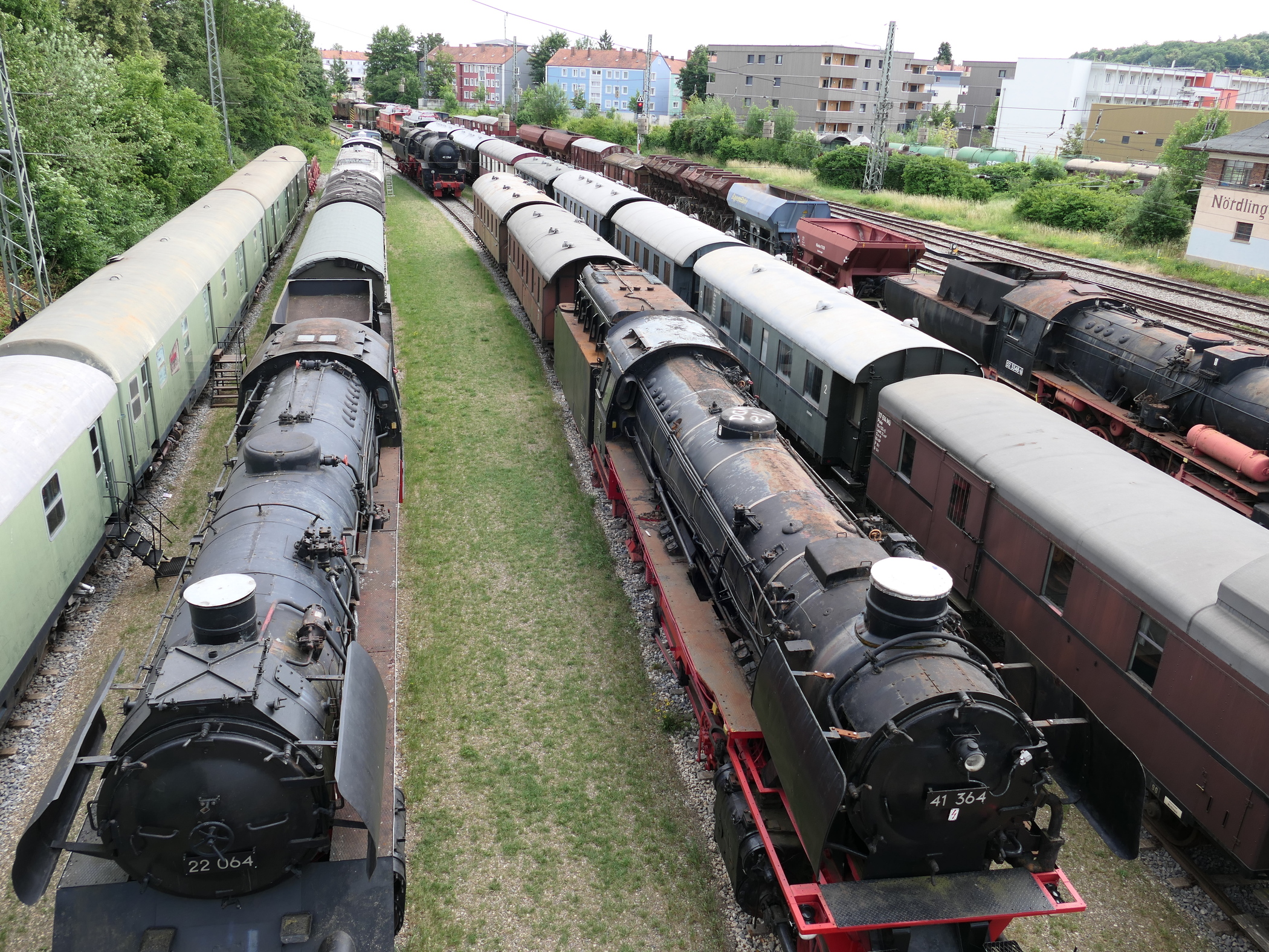 Und dann ging es zurück nach Nördlingen ins Bayerische Eisenbahnmuseum mit vielen alten Lokomotiven, manche schon gut restauriert, manche warten noch auf bessere Zeiten. Und manche sind so gut in Schuss, dass man damit ab und zu Tagesausflüge machen kann.